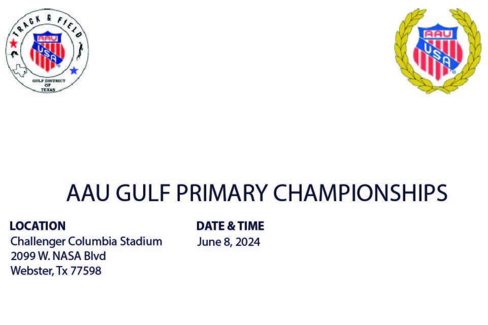 The 2024 AAU Gulf Primary Championships will be held June 8, 2024 at Challenger Stadium. Register on www.coacho.com.