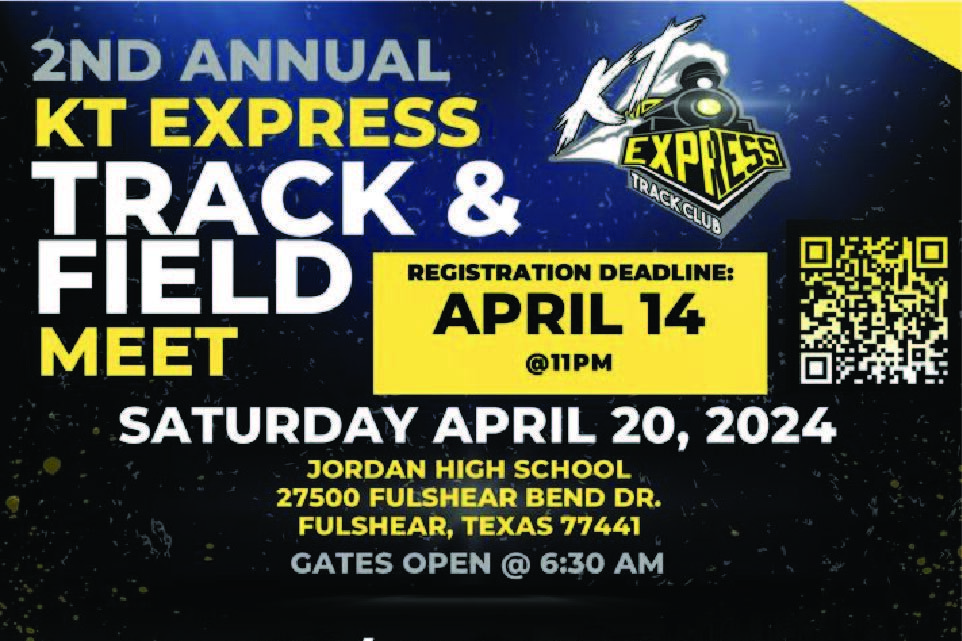 The 2024 KT Express Track & Field Meet will be held April 20, 2024 at Jordan High School. Registration is open now. Register on www.athletic.net or by using the QR code on the flyer.